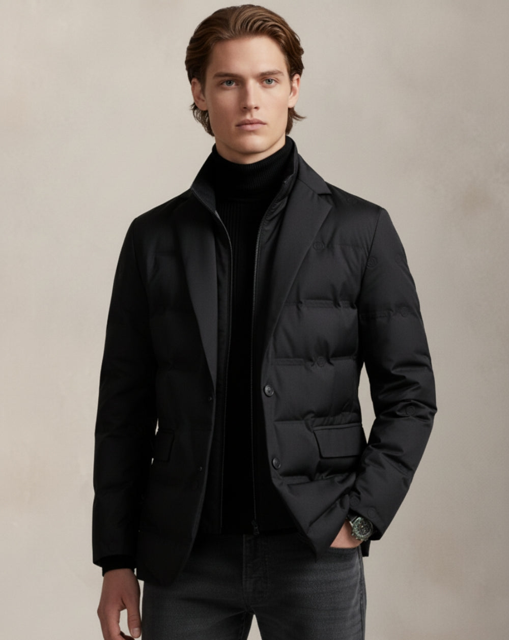 Kurtka pikowana Heritage łączy w sobie elegancki krój z nowoczesną funkcjonalnością. Wykonana z lekkiej, ocieplanej tkaniny, oferuje elegancki krój marynarki z ciepłem odzieży wierzchniej. Zaprojektowana z opływowym krojem, karbowanymi klapami i kieszeniami z patkami, z łatwością łączy w sobie wyrafinowanie sali konferencyjnej z nonszalanckim stylem. Niezależnie od tego, czy założona na golf, czy w połączeniu z elegancką koszulą, to wszechstronny, niezbędny element garderoby, który łączy klasyczną elegancję z nowoczesną praktycznością.
