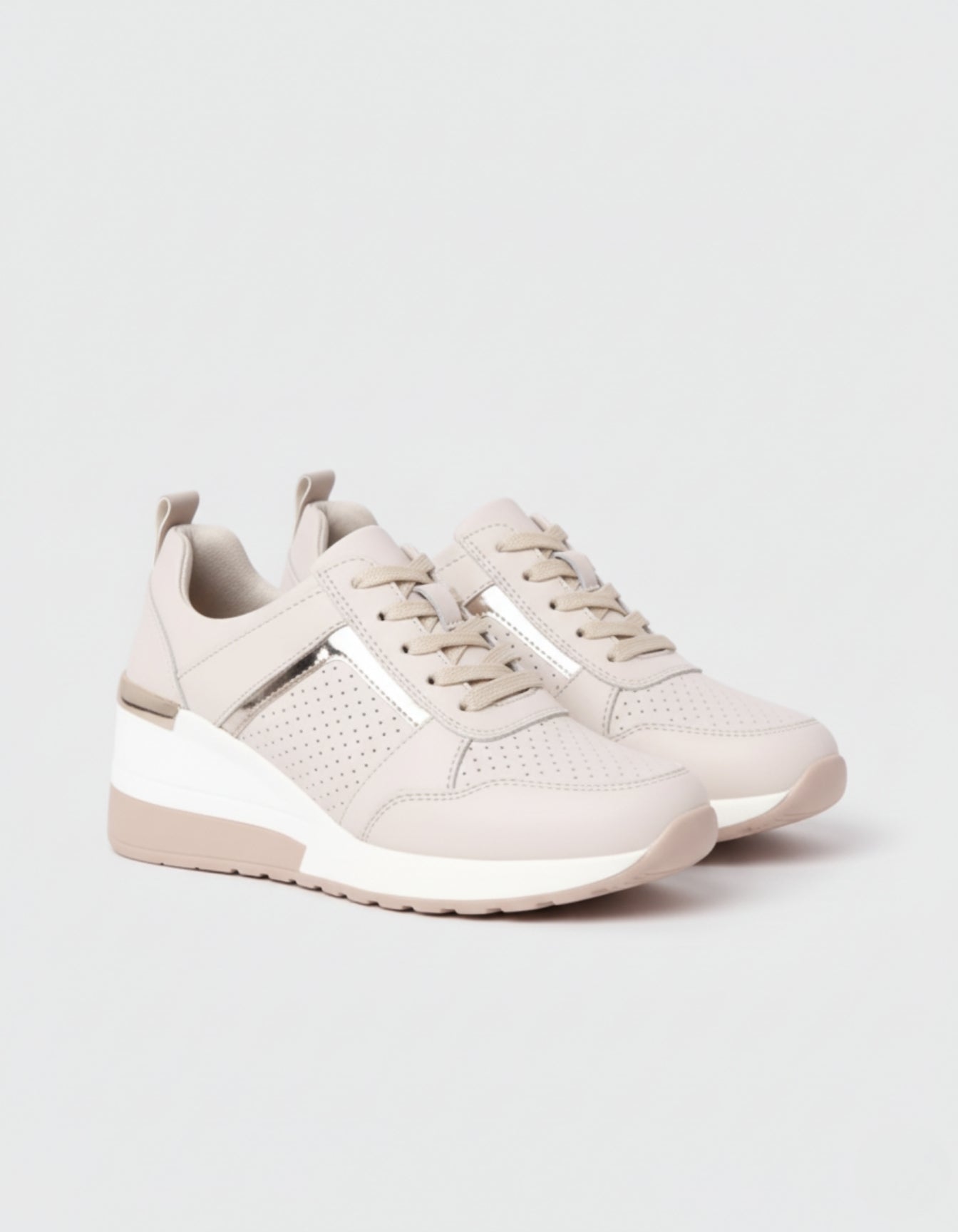 Poczuj pełne gracji wsparcie dzięki butom Elegance Wedge Sneaker — zaprojektowanym tak, aby łączyć wygodę z ponadczasowym europejskim stylem. Ukryta podeszwa koturnowa delikatnie podnosi stopę, jednocześnie utrzymując ortopedyczne ułożenie, redukując obciążenie kolan i dolnej części pleców. Oddychające perforowane panele zapewniają całodzienną świeżość, a amortyzujące wsparcie łuku stopy zapewnia stabilność i równowagę.
